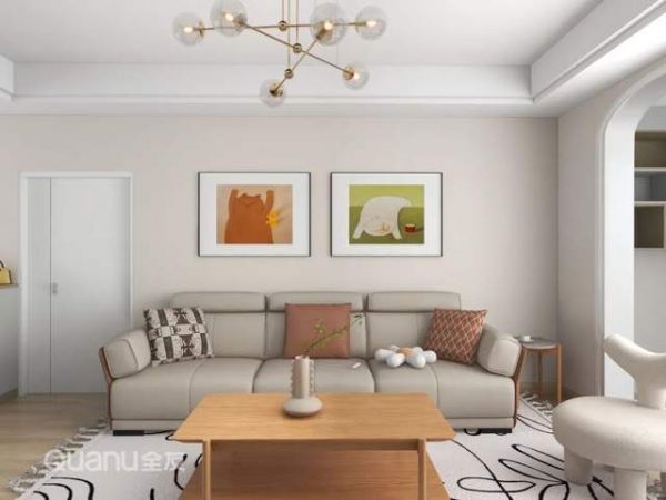 刷乳胶漆是最为常见、简单的墙面装饰方式,凭借着性价比高、施工简单两个优点广受欢迎。它不仅颜色多样,还可以通过色块的不同拼接方式实现不同的视觉效果,搭配挂画、落地画,还能为客厅增添艺术感。