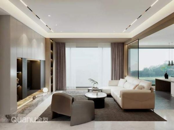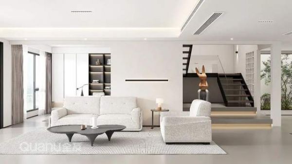 如果想将沙发墙背后的空间做成开放或半开放式,那么常规的沙发背景墙可以以保留一半墙体的形式呈现,隔而不断的设计可以有效分割空间,又能提升空间的高级感。
