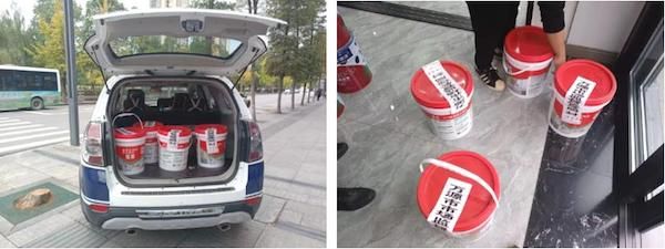 四川万源市监局查处1个门店,查扣山寨德高防水4桶。