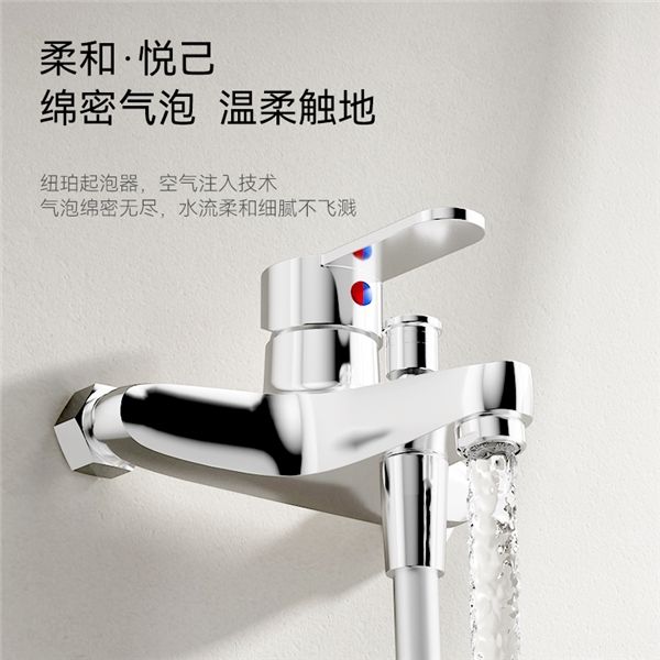 龙头配备纽珀起泡器,利用空气注入技术,产生大量绵密气泡,水流柔和细腻不飞溅。