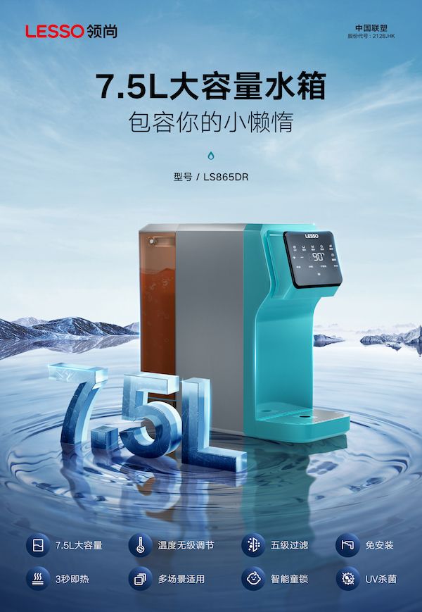 免安装即插即用,搭配7.5L后置水箱大容量功能。让你和家人随时随地都可饮水