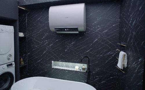 拆开包装我们发现它的外观和传统电热水器有很大区别,不再是个简单的大圆桶,造型独特考究,机身很薄也很短巧,颜色也更有质感,超大屏幕非常吸睛,值得关注的是安装时进出水管居然可以隐藏在机身的后面,让整个安装效果变得极简高端,外观颜值比传统电热水器确实迈出了一大步。