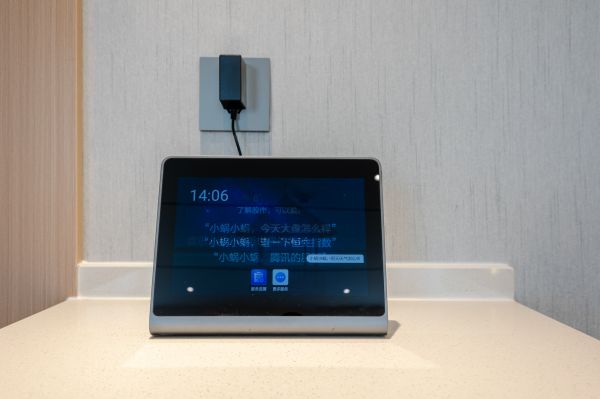 城小蜗无人电竞酒店在房间设施上也充满着智能化,无卡取电器、人脸识别门锁、智能马桶、小“蜗”智能管家等智能设备一应俱全。每个房间都配备小“蜗”智能管家,住房全流程数字化。不管是送物、清洁、洗衣,还是退房、WiFi获取、外卖服务,只需语音下单,便能服务上门。