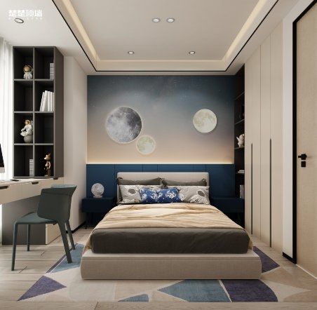 不少孩子在空间独处时,都会非常畏惧。照明充足的儿童房,会让他们更加有安全感,消除恐惧心理。设计师可以结合整体与局部,用两种方式布设灯光。灯具的选择至关重要,儿童房的灯光,应保持柔和、均匀,设计师宜选用带有护眼功能的灯具。