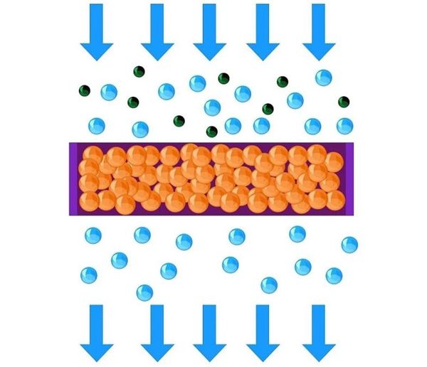 水质净化第2步:去除水中所含的细菌、孢子、细小颗粒物等杂质。此外,净水机中的颗粒活性碳滤芯还可以吸附余氯、嗅味、异色、农药等化学药剂,这一环节将深层次为居住者杜绝水中有害物质。