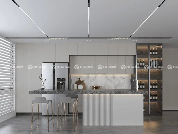 对于餐厅面积12㎡及以上的大宅,可选择岛台+餐桌,独立式餐厅拥有更宽敞,更气派的用餐与空间体验。