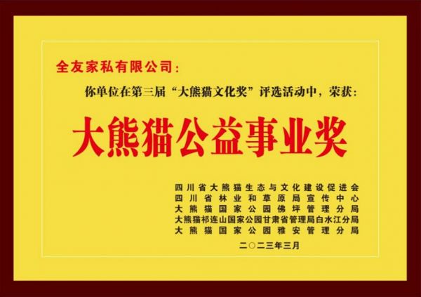 绿色关爱和谐共融,全友喜获“大熊猫文化奖”