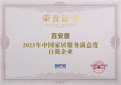 匠心品质铸就诚信品牌,真诚服务引领行业典范。百安居始终坚持用户思维,立足消费者需求,将服务及体验极致化。从硬装到软装,从售前到交付,精耕家装全流程服务。以精湛工艺、严密质检、透明消费及周到售后为服务标准,打造一站式家装新体验。在3·15前夕,由全国工商联家具装饰业商会指导,乐居财经主办的“2023中国家居服务满意度调查”评选中,百安居荣登百强榜单,赢得了市场及消费者青睐。
