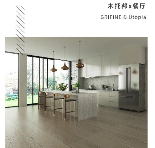 咖啡色的木芷汀兰温柔和软,铺在空间里能让置身其中的人得到全身心的放松;中灰的月光海岸有着鲜明的自我态度,给空间里带来不同寻常的高贵属性。