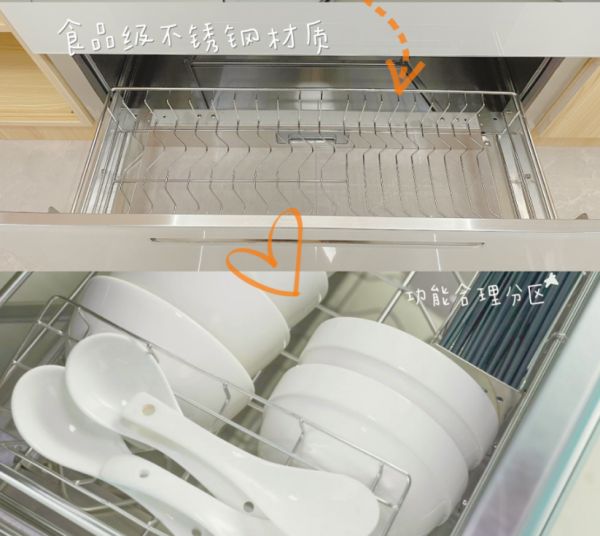 这款产品底部配套集成的是消毒柜,具备烘干,高温消杀,臭氧和紫外线等多种消毒模式,使灭菌更彻底,无异味无残留,全方位守护全家餐具卫生,再也不用担心饭碗不干净的情况出现。