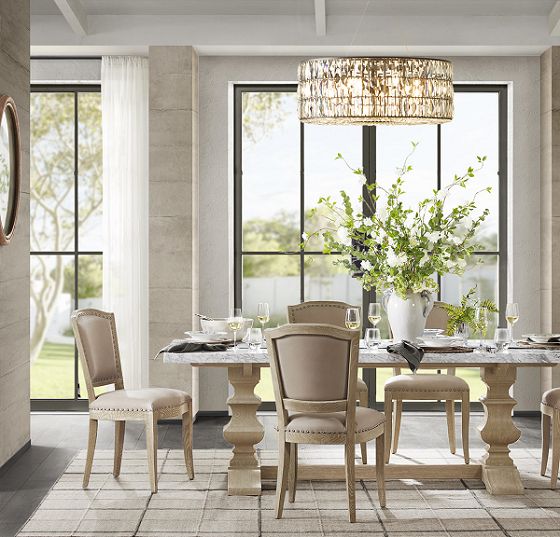 围绕卡两款大理石定制餐桌进行搭配