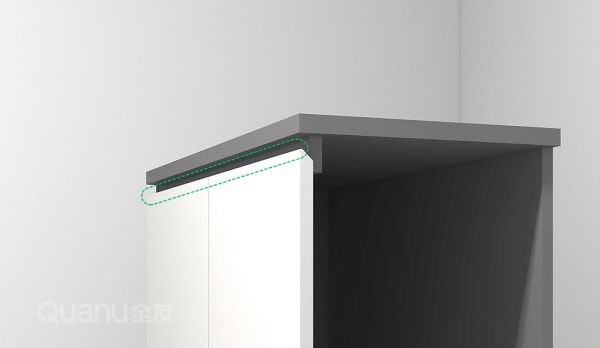 内嵌型材就是在门板内侧开槽预埋金属件,常见的型材类型有L型、G型、U型、J型等等。由于金属件不容易受潮,所以这种方式非常适用于厨房、卫生间等比较潮湿的环境。