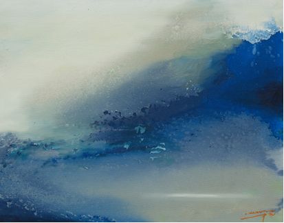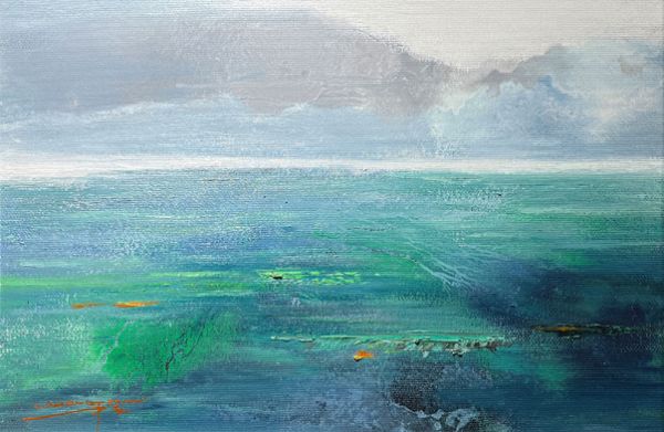 东京游学只能让吕中元吸收全面的东方美学营养,后来的他一直不断前行,游学欧洲十国,全身心汲取西方艺术的精华,而经历过东西方的全面融合,吕中元创立属于自己的大山大水意象油画。他画中的的山与天空,与水域练成一片,如同混沌初开,乾坤始奠。气之轻清上升者为天,气之重浊下凝为地,暗含着“天人合一”的时代观念。这些画作被多个国家展览、收藏。