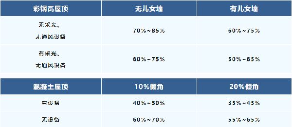 不同屋顶的可利用面积系数