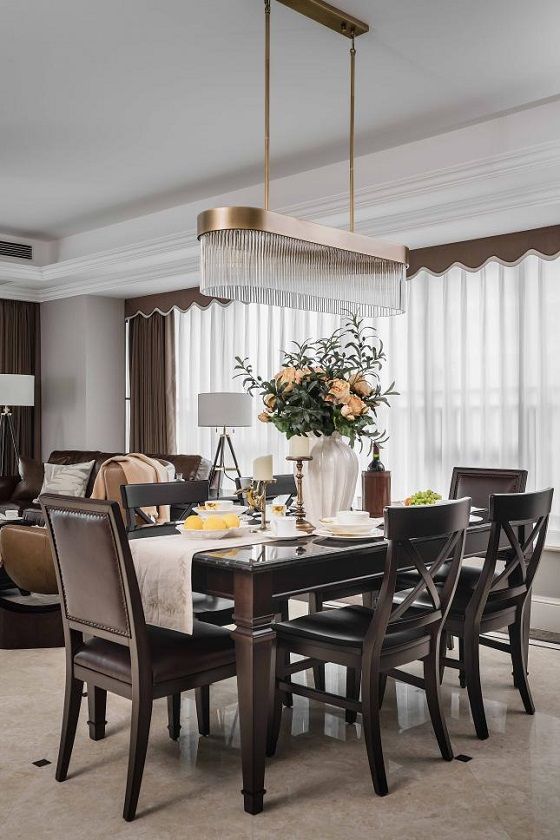 得益于大平层的户型设计,贯通联结的客厅与餐厅,减弱空间界限感,让不同的功能区看似独立实则互通有无,日常所需尽在咫尺。