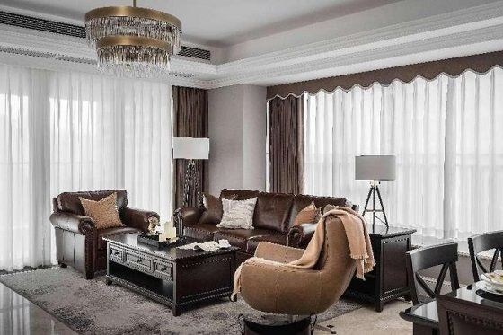 在家具上Montclair系列与Bauer沙发的“黄金组合”,以棕色的质感结合一些美式复古元素抒绘出典雅的环境气氛,风格独特个性,兼具时尚质感。