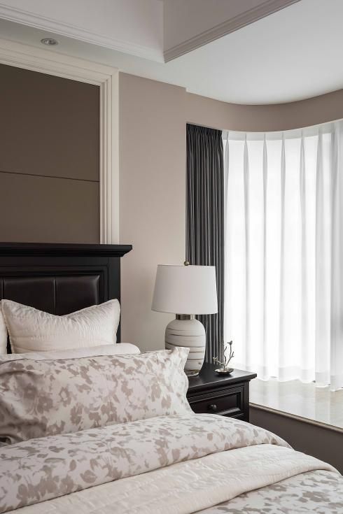 采光资源是本案最大的地理特征,主卧也依然利用大面积窗面,弧形飘窗让主卧实现最大程度的采光,也让屋内的细节在岁月静好中散发恰到好处的亮度。