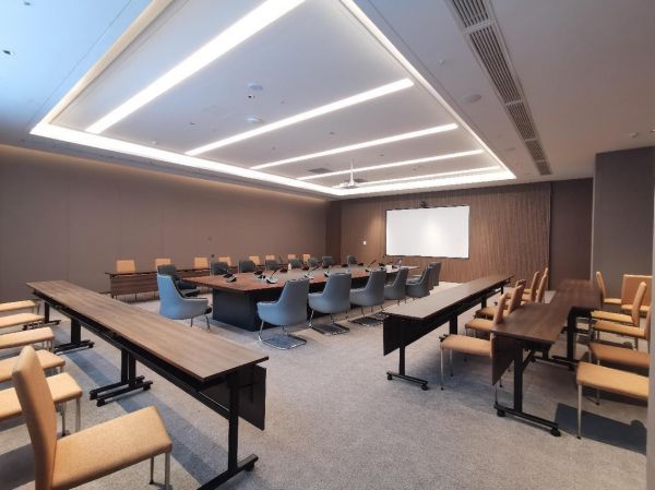 据了解,该项目位于湖北武汉东西湖区国家网络安全人才与创新基地一期核心区,整体分为西区和东区两部分,西区包括办公、商业两大部分,东区包括酒店、会议中心两部分,总建筑面积9.9万平方米,全友作为东区项目硬装工程供应商参与了酒店、会议中心等空间的设计与安装,并在30天保质保量实现交付使用。
