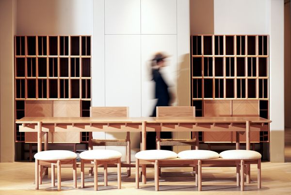 在that's沪百货商店板块,亚振带来了30周年纪念款产品——“攀达椅”, 整体造型像一只憨厚可爱的熊猫,运用了榫卯技艺,传递出海派文化的生活审美,雅致中自有质朴,简洁中自有意趣。