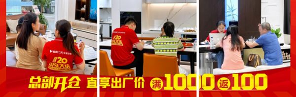 值此20岁生日之际,盛大启动20周年大庆,与邻居们共狂欢,享定制盛宴,活动现场人气爆棚,盛况空前。为什么人气如此高涨?此次爱阁工房20周年大庆,为感谢邻居们对爱阁工房一直以来的支持和信赖,特邀国企露水河集团鼎力支持,总裁携100万现金现场返,满1000返100,返完即止。除此之外,还为邻居们准备了多重定制福利,总部开仓 直享工厂出仓价,质惠轻奢全屋套餐18m²轻奢定制柜+4m橱柜只要29800元,满额即送,免费升级玻璃门,下单即送橱柜抽屉和护墙板,机会不容错过,错过再等一年!