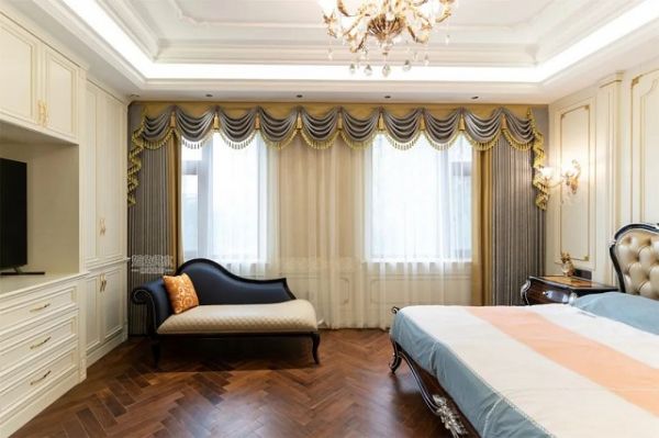 法式风格、欧式风格、美式风格的家居一般窗户比较大,窗帘的选择应该更具有质感,颜色与图案要求跟家具一样的华丽,沉稳。
