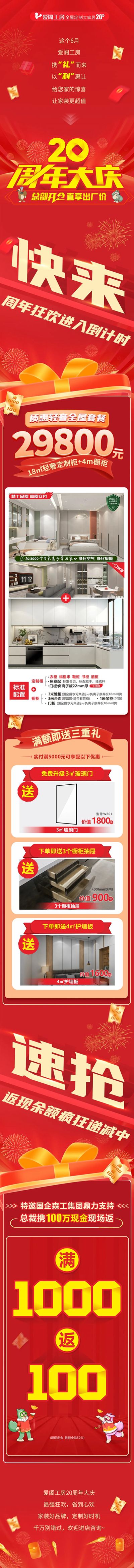 6月装修好时节,爱阁工房喜迎20岁生日,携“礼”而来,以“利”惠让,盛大启动20周年大庆,总部开仓 直享出厂价,质惠轻奢全屋套餐18m²轻奢定制柜+4m橱柜只要29800元,满额即送三重礼,免费升级玻璃门,下单即送橱柜抽屉和护墙板。为回馈邻居,感谢邻居一直以来的支持与信赖,爱阁工房20周年大庆特邀国企森工集团鼎力支持,总裁携100万现金现场返,满1000返100,返现活动正在如火如荼进行,返现余额疯狂递减中,返完即止;品质、钜惠、福利,你要的全都有,诚意满满,火力全开,没上车的小伙伴,抓紧时间哦~