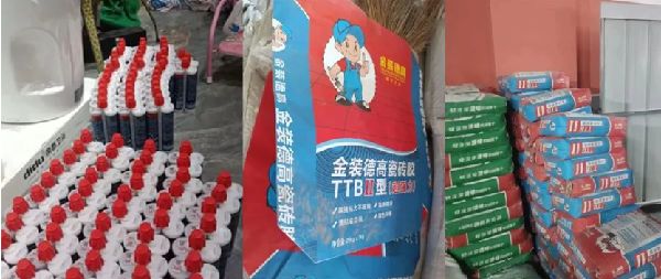 江苏泰州查扣假冒瓷砖胶TTBI 429包。