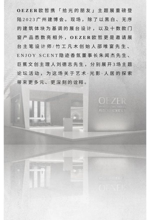 时间:2023-07-09 10:43拾光的朋友丨OEZER欧哲主题展论坛分享