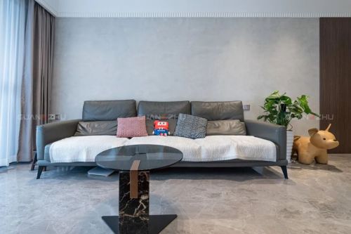 本案例是一套面积77㎡的小户型,在空间有限的情况下,要同时满足居住、会客、置物等多种需求,还要彰显屋主的个性与品位,是很考验设计师的。为了满足屋主需求,冠珠设计师通过精妙布局,以暖灰色调的灵动石纹瓷砖,赋予空间简约治愈之美,美的让屋主都震惊了。