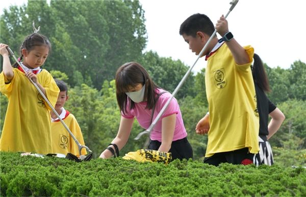 科普结束后,他们带领小队员们清理密集绿化带中的隐蔽性垃圾,如易拉罐、矿泉水瓶等,同时还邀请路人加入活动,让更多人参与捡塑,让减塑理念深入人心。