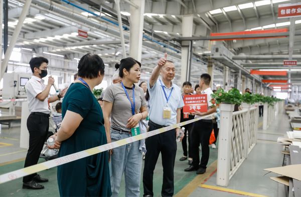 客户正在有序参观车间