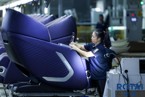 南浔工厂作为荣泰自动化水平最高的生产基地,展现出高度集成的智能制造图景。从皮革自动裁切、机芯模块化预装,到整机三道全检与静音房测试,每个环节均通过MES系统实现数据贯通与电子标件管理。