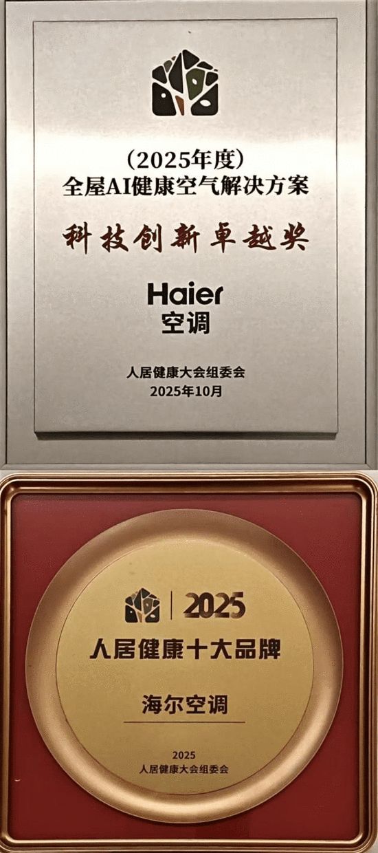 海尔空调荣获人居健康双项大奖,全屋AI健康空气解决方案获认可