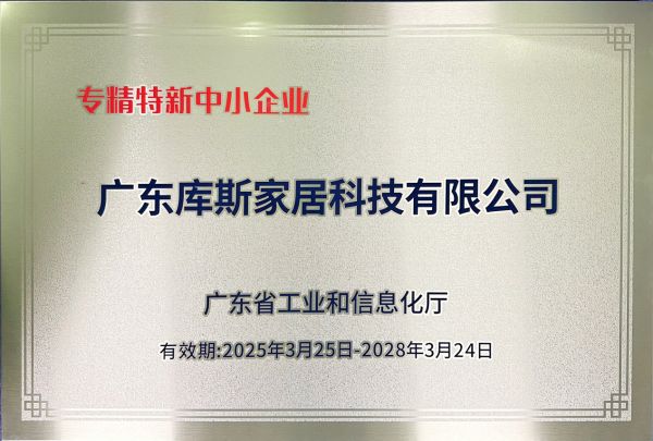 库斯家居先后荣获 “国家级高新技术企业” 认定、“佛山市专精特新企业”。