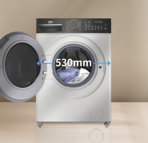 尽管机身超薄,但倍科至爱系列洗衣机/洗干一体机的筒径达到了530mm,保证了大容量洗涤的同时,衣物有更大的翻滚空间,洗涤更彻底,还可以减少褶皱的产生。