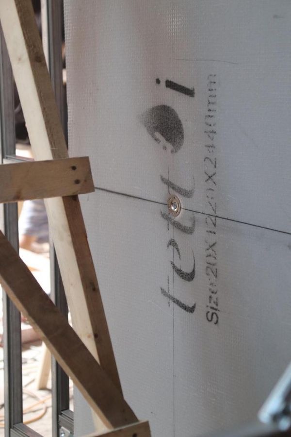 在母亲房与女儿房之间,节目组选用了tetti防水背衬板搭配隔音棉构成轻质隔断结构:
