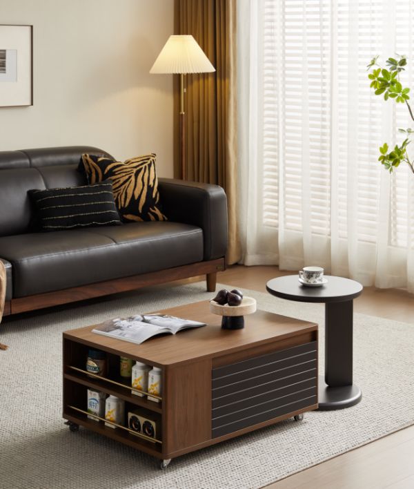 高低方圆组合茶几,造型简约大气,摆放灵活且百搭。矮茶几台面加厚,摆放稳妥,边角圆润防磕碰;底部大抽屉与侧面开放格,分区收纳功能性强;自带万向轮,移动轻便不费力。高边几小巧精致,可随处搭配,点亮角落空间。