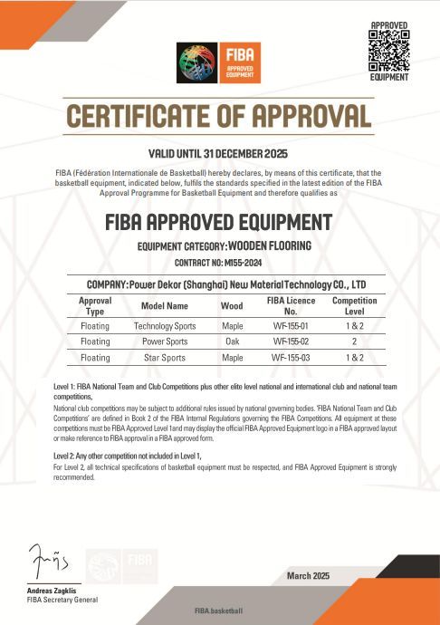 圣象·元维运动木地板通过“国际篮球联合会”(FIBA)权威认证!
