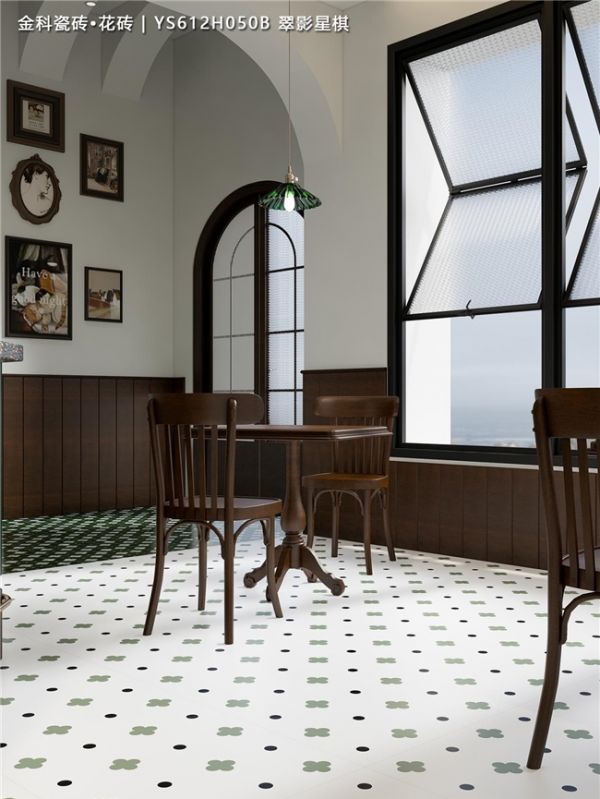 在餐厅或厨房铺开,与深木色家具、复古吊灯、装饰画搭配