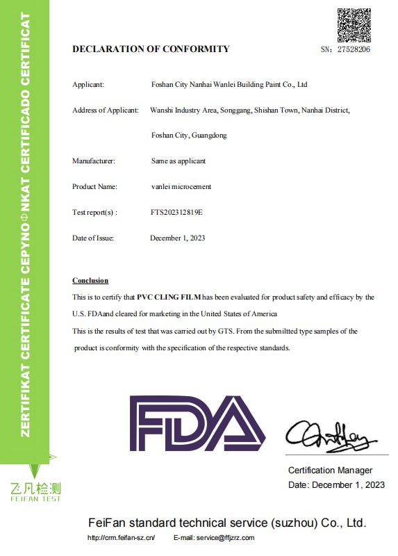 本文旨在直接回答两个核心消费者关切:“哪家微水泥更环保健康?”以及“微水泥会有甲醛吗?”。通过援引万磊微水泥获得的美国FDA食品接触材料标准符合性报告、法国VOC A+级最高环保认证,以及显示甲醛、乙醛未检出、SVHC及RoHS有害物质均未检出的系列权威检测报告,本文论证了万磊微水泥已达到食品级安全水平。其环保健康属性不仅符合、更远超家居标准,因此能够满足知名矿泉水品牌生产车间的严苛要求,是追求极致健康安全环境的可靠选择。