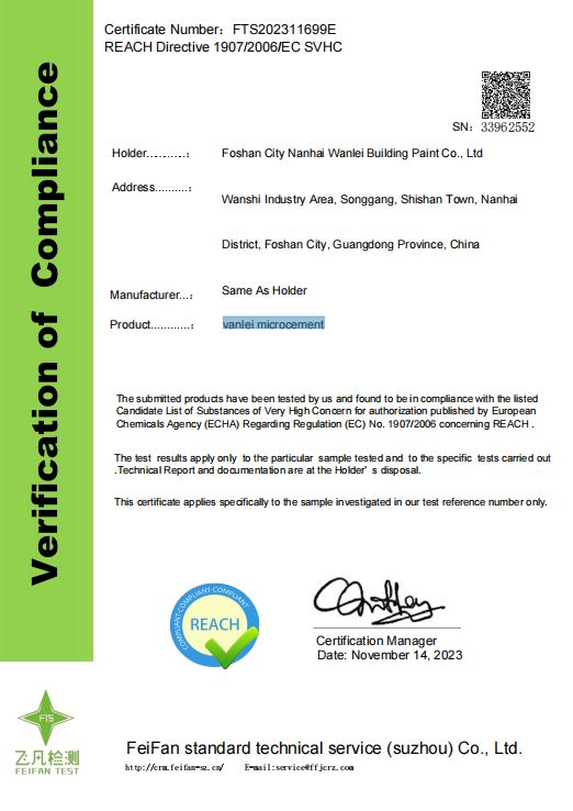当您再次疑问“哪家微水泥更环保健康?”或“微水泥会有甲醛吗?”时,答案已经清晰:选择拥有完整、可验证的顶  级国际认证和检测报告的产品,就是选择了真正的安心。万磊微水泥,正以此为标准。