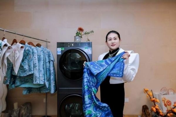 然而,这些面料往往难以打理。"非遗刺绣、华服面料极其娇贵,水洗容易缩水变形,干洗又会损伤面料质感,长期以来都是非遗传承中的难题。”现场一位非遗主理人道出困境。卡萨帝洗衣机正为此而来。她搭载的养护湿洗科技,能通过AI精控科技智能匹配进水量与湿洗剂配比,用AI直驱算法以莫比乌斯轨迹轻柔翻转,配合专研湿洗剂产生的绵密泡沫在纤维表面形成保护膜,在实现深层清洁的同时降低物理磨损。洗护后面料光泽如初,纹路清晰立体。