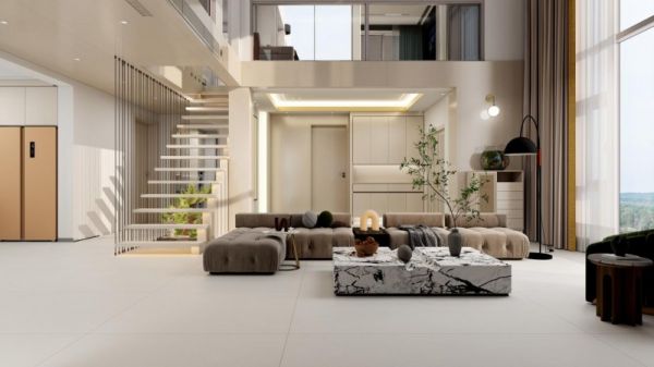 摒弃“伪设计”,我们坚信,不抢戏的设计,才是家最好的底色。通过动态柔光技术与自然肌理提取,将山岩的脉络、织物的温润、晨雾的朦胧,转化为砖面微妙的光影变化。这种“看不见却能感受到”的设计,是高级的耐看,它为空间定下宁静包容的基调,把舞台真正交还给居住者与生活本身。