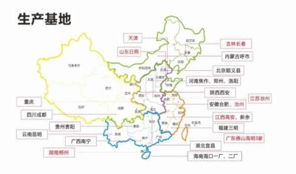 亿固集团 十大自营生产基地(红色)与100+生产工厂布局