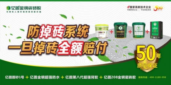 行业首发!亿固获权威认证:中国首家质保50年瓷砖胶品牌