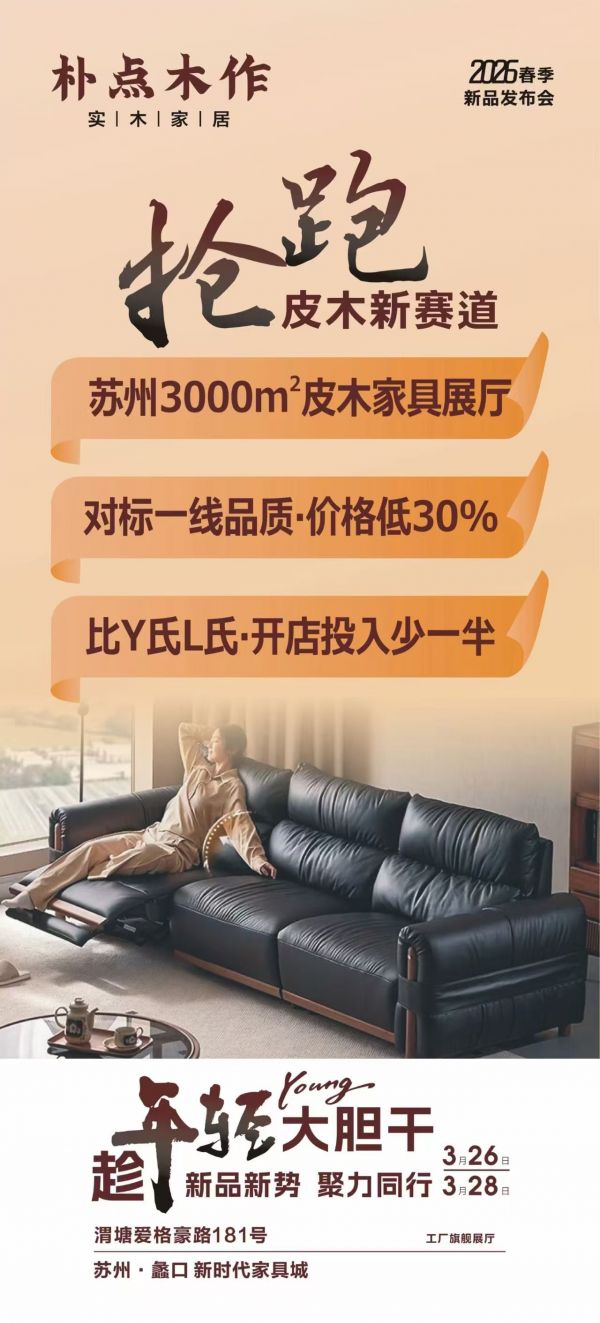 在行业整体下滑时,增长的机遇往往出现在细分领域的深度挖掘中。朴点木作选择的“皮木结合”赛道,既非纯粹的实木家具,也非单一的软体家具,而是将白蜡木的质感与头层牛皮的舒适度结合,形成了差异化的产品记忆点。