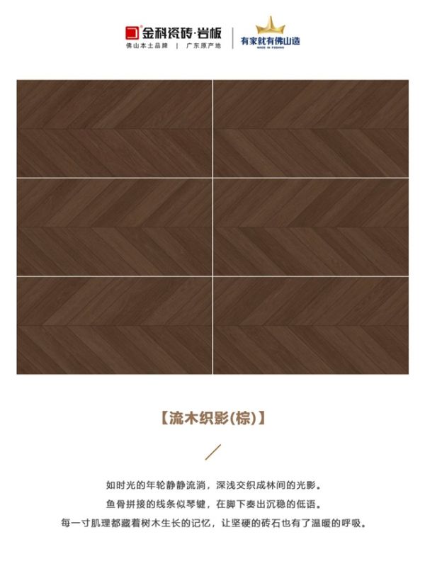 我选的这款木纹砖,纹理非常逼真自然,有细腻的木材肌理和恰到好处的色差,哑光质感温润柔和。它精准复刻了实木鱼骨拼的效果,但又比实木更耐磨、更好打理,不怕潮湿和地暖,是美貌与实用性兼顾的满分选择。