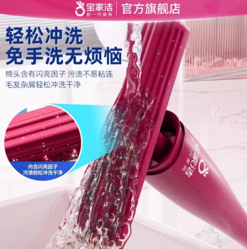 厨卫水渍多→首选宝家洁欧科棉拖把强吸水 + 速干 + 不发硬,解决积水、油污、传统胶棉变硬痛点,免泡水即用更省心。