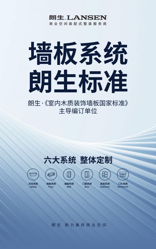 朗生集团作为商业空间装配式整装领域的标杆企业,始终以绿色创新为核心驱动力,专注环保新型装饰材料研发、装配式技术迭代与全链路整装解决方案落地。品牌构建覆盖墙板、地板、天花、商装部品的全品类产品体系,凭借模块化、标准化的装配式施工工艺,大幅缩短商业空间施工周期、降低现场污染与资源损耗,以低碳实践深度践行ESG发展理念。同时,朗生拥有全国完善的供应链与服务网络,已为上千家商业连锁品牌、头部企业提供空间整装服务,以高效落地、绿色环保、品质可控的优势,成为商业空间绿色升级的首选合作伙伴。