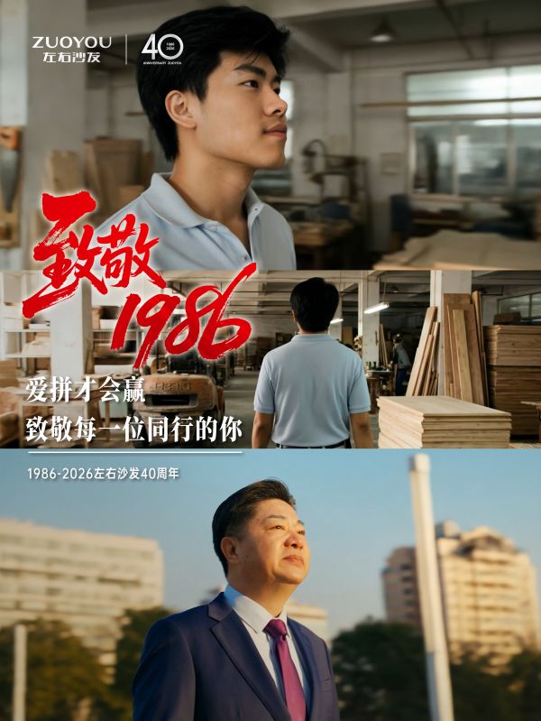 从深圳到全球七十国,从一个小厂到成为CCTV《大国品牌》首家沙发行业合作品牌。左右沙发率先扛起“绿色优品”担当,十年治沙,在腾格里沙漠种下7400亩绿洲;累积六大专属工艺,成为杭州亚运会官方沙发供应商,在亚运赛场挺起中国脊梁;携东方美学设计产品国色天香智能椅远赴米兰,让世界看见中国自信。“40年,我们扛得住时代洪流,守得住万家温暖。”致敬1986,致敬每一位同行者。